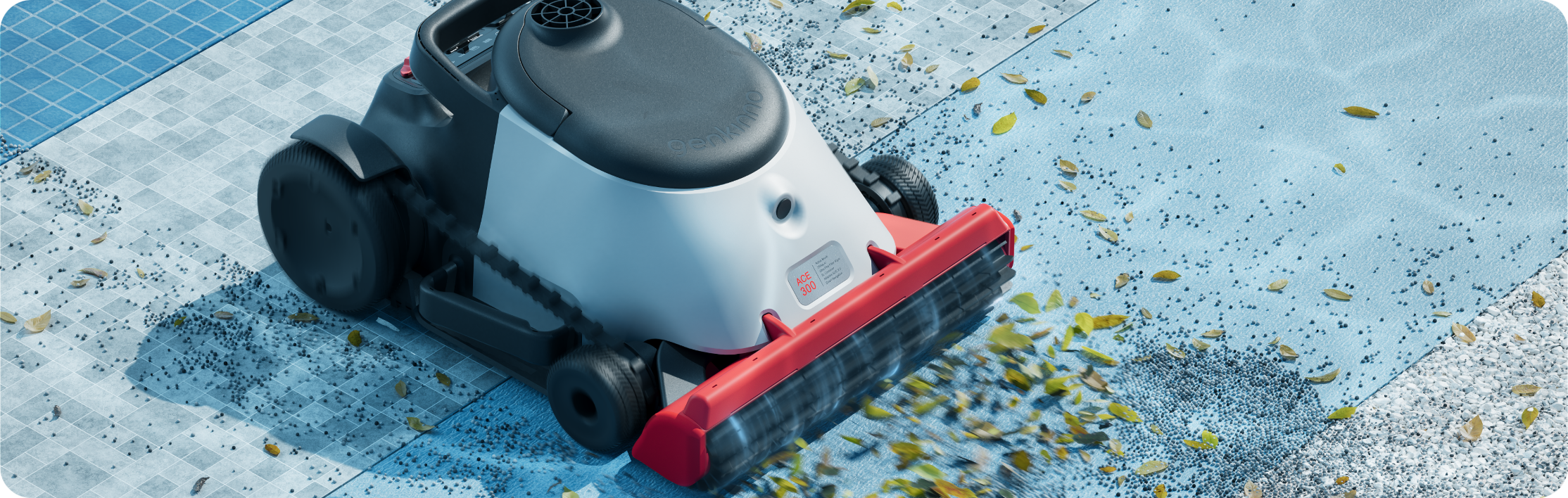 With the Genkinno ACE series, you can effortlessly enjoy hassle-free pool cleaning with the simple press of a button. In less than 1 hour¹, it thoroughly cleans your pool, leaving it sparkling and ready for you to take a quick dip, anytime.
